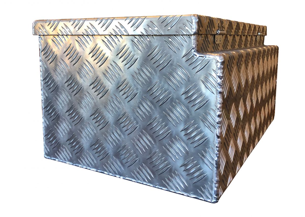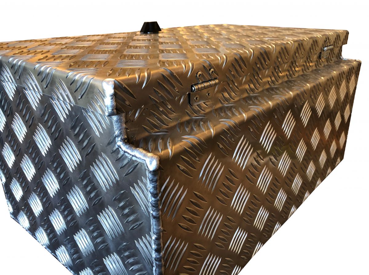 Aluminium Werkzeugkiste oder Deichselbox mit Verschluß an die Oberseite.